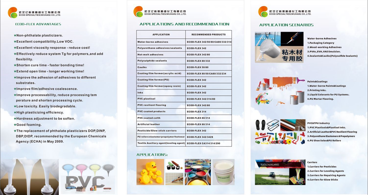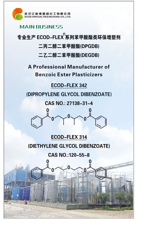 Ecod Specialties (Wuhan) Co., Ltd. Çin'in önde gelen Benzoik ester plastikleştirici üreticisi olup, DIPROPİLEN GLİKOL DİBENZOAT, DİETİLEN GLİKOL DİBENZOAT ve diğer ester türleri gibi Benzoik esterlerin ticari üretimine ve özel imalatına odaklanmaktadır. "Sözünüzü tutun ve müşterimizi başarılı kılın" değerinde ısrar ederek, müşterilerimize daha iyi çözümler sunmak için ürün kalitesini ve formülasyonu geliştiriyoruz. Şu anda Ecod Specialities(Wuhan) Co.,Ltd. çok uluslu bir ortak girişim dışında Çin'deki tek gerçek kaliteli DPGDB/DEGDB üreticisidir. Kalite açısından, küresel pazardaki bazı ünlü markaların muadil ürünlerinden bile daha iyiyiz. Ekim 2013'te Ecod Specialities, VELSICOL CHEMICAL LLC (30 yılı aşkın süredir küresel benzoik ester pazarında tanınmış bir oyuncu) ile bir ortak girişim anlaşması imzaladı ve Velsicol, şirketin yabancı yatırımcısı ve ortağı oldu. Her iki taraf da birbirleriyle ekip oluşturacak. diğeri özsermaye yatırımı, Ar-Ge ve küresel pazar geliştirme vb. konularda.